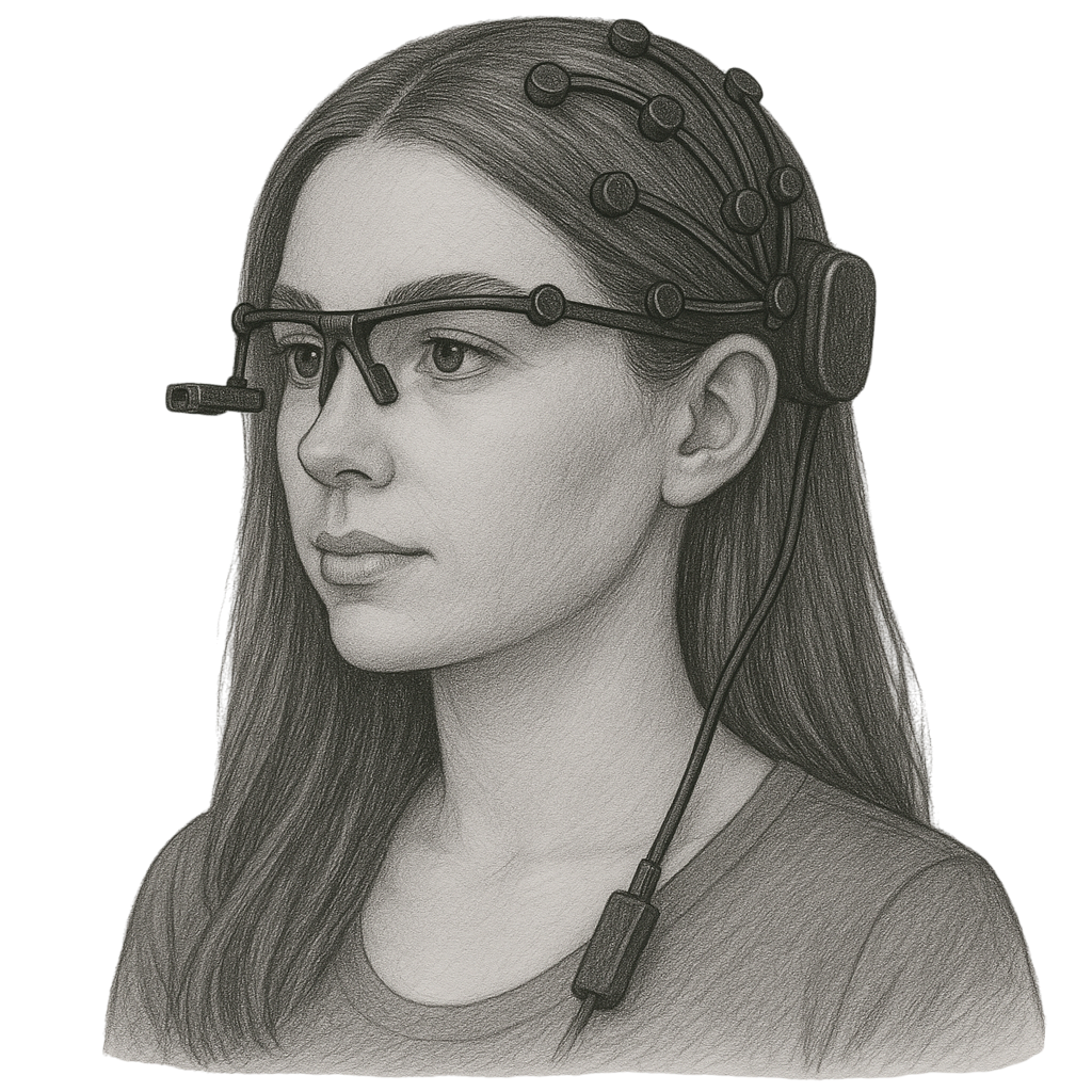 EEG (electroencephalography) measures the brain’s electrical activity using sensors placed on the scalp. In our research, it is used to track brainwaves that reveal levels of attention, engagement, and emotional responses while interacting with ads or online stores.